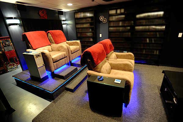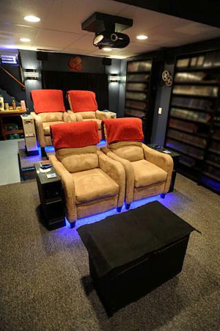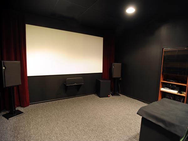 This theater was built on a budget. The screen is stretched blackout cloth. Recliners are cheap ones that was on sale for $160. Dimmer remote controls purchased at the local box store. Everything was built and installed by myself. My guess is that under $5,000 was spent on this theater.
